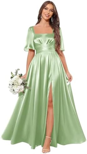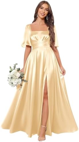 – Stylish Design: This beautiful square neck bridesmaid dress boasts flutter sleeves and a flattering A-line silhouette, perfect for any figure.