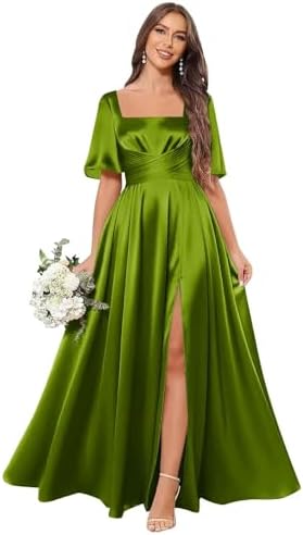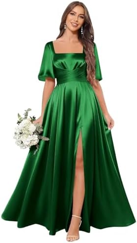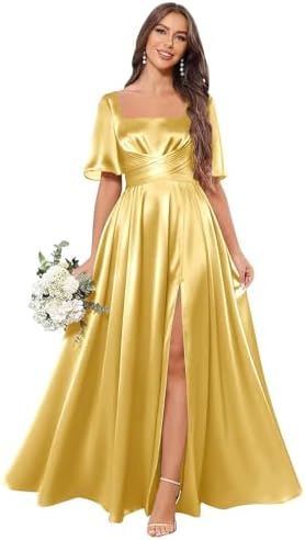 Elevate your style and make a statement with our chic square neck satin bridesmaid dress today!