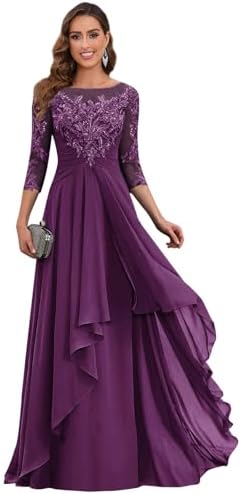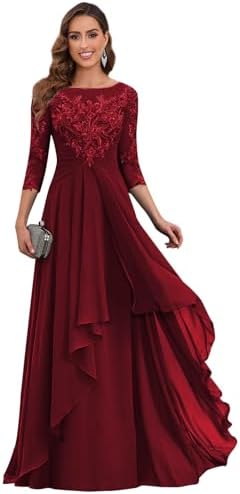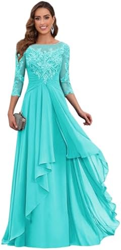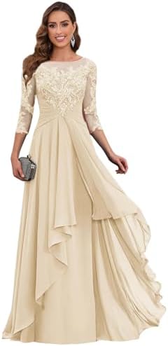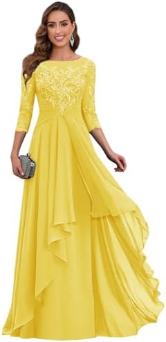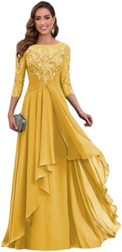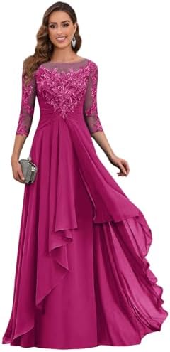 Fu Jiang Short Sleeve Lace Applique Mother of The Bride Dresses for Wedding – Elegant Long Chiffon Formal Evening Gowns